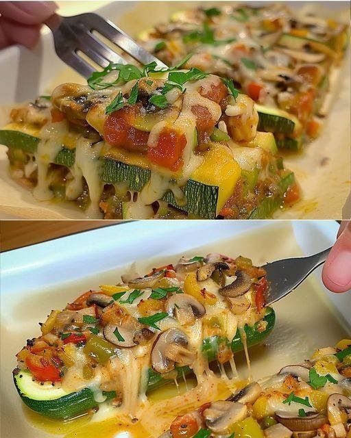 This garden-fresh zucchini lasagna with mushroom and mixed vegetables is a delicious and healthy twist on classic lasagna. By using zucchini slices instead of traditional pasta, this dish is not only lower in carbohydrates but also bursting with fresh flavors. The combination of mushrooms, peppers, and tomatoes creates a hearty filling, perfectly complemented by melted cheese and fresh herbs. This lasagna is ideal for a healthy dinner and is sure to impress your family and guests.