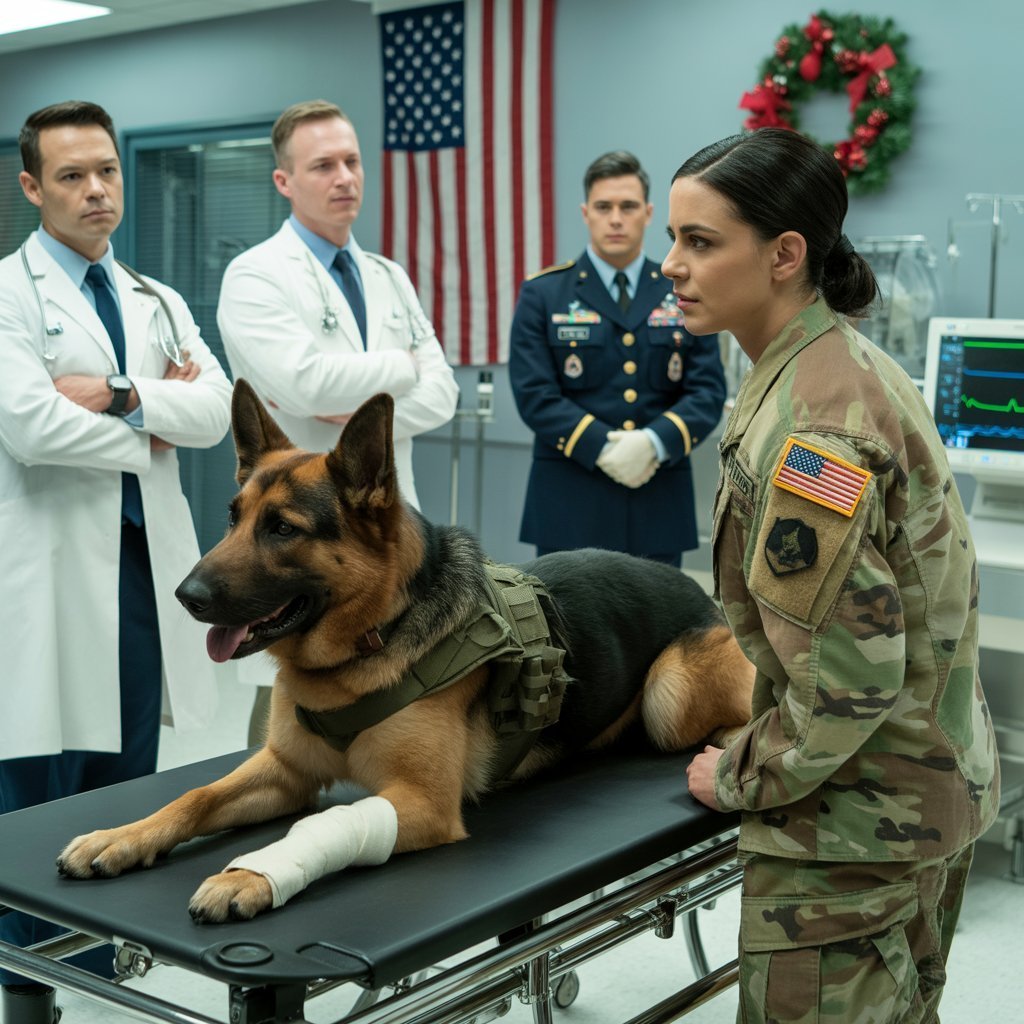 Two military police officers backed through first, boots skidding on tile, uniforms streaked with dust and dried blood. Between them, strapped to a sagging gurney, was a Belgian Malinois. Not barking. Not growling. Just watching—every shadow,